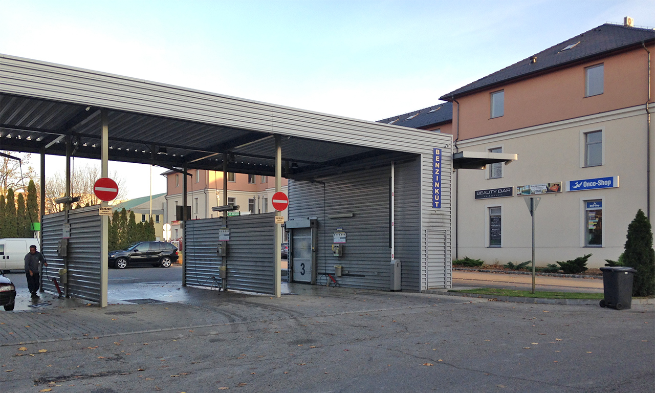 Tehergépkocsik mosására alkalmas, 4,4 m belmagasságú mosóállások